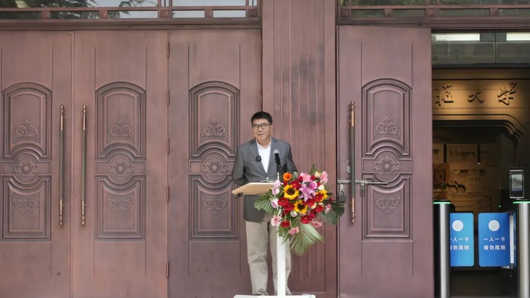 開幕式最后,徐兆壽致答謝詞。他說,做這次展覽的初衷,是因?yàn)樵谶@個數(shù)字、AI和音視頻的傳播時代,書寫可以體悟中國文化的心法。他自三十六歲起開始與孔子、老子、鳩摩羅什等圣賢結(jié)緣,五十歲以后又遇見了伏羲、大禹,正是如此多的先賢讓他有了弘道的愿望。同時特別感謝樓宇烈、莫言、賈平凹、連輯、李敬澤等眾多文化名家的支持,共同呼吁大學(xué)生抄寫經(jīng)典,傳承中華文脈。最后,他呼吁更多的人拿起毛筆或鋼筆,重新書寫,傳承經(jīng)典,弘揚(yáng)傳統(tǒng)文化。