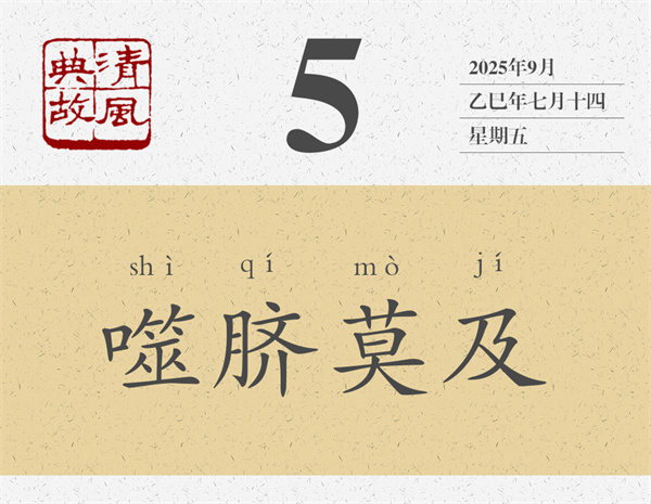 楊伯峻認為,“噬齊”是當(dāng)時的俗語。齊,通“臍”,即肚臍。“噬齊”即用嘴去咬自己的肚臍,意謂夠不著,咬不到。后世則以“噬臍”或“噬臍莫及”為典,比喻再后悔也來不及了。葉夢得詩《懷西山》:“平生幾濡首,末路多噬臍。”