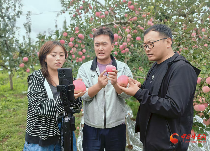 果園里,團(tuán)隊(duì)又開始了新一輪直播,年輕主播手捧一顆嘎啦蘋果仔細(xì)講解,后臺訂單提示音此起彼伏。