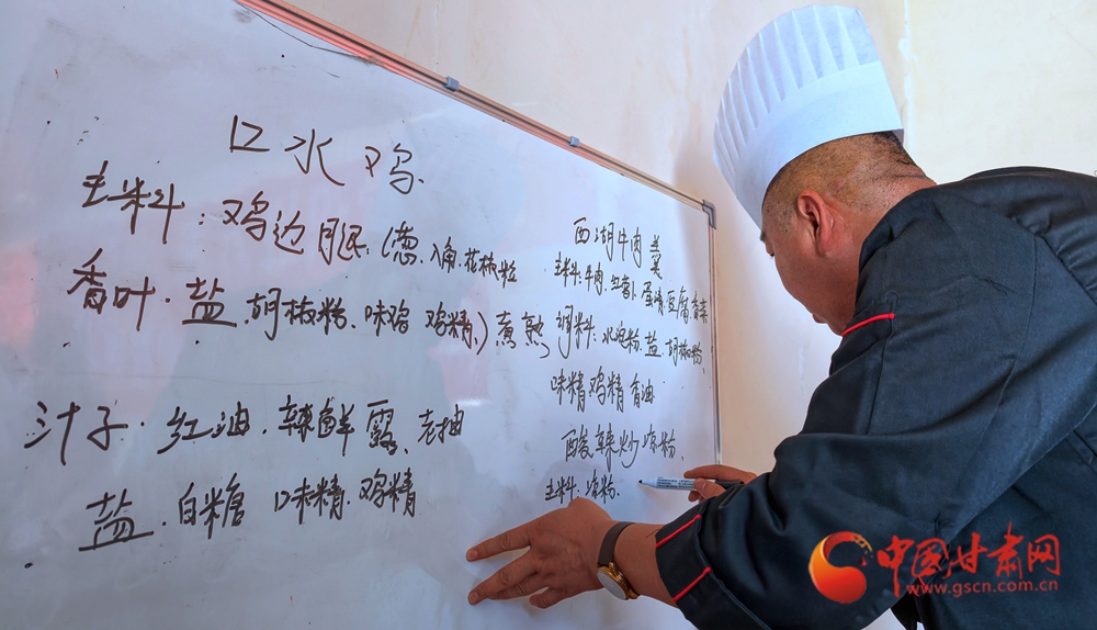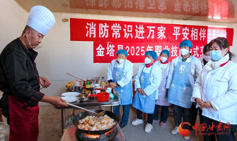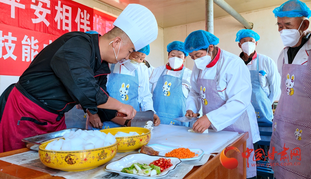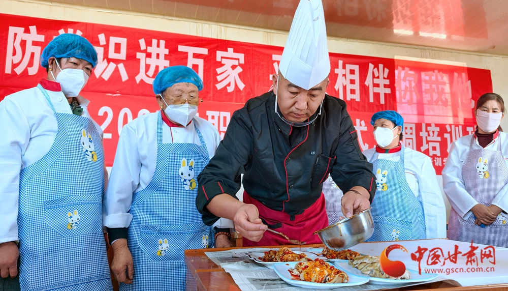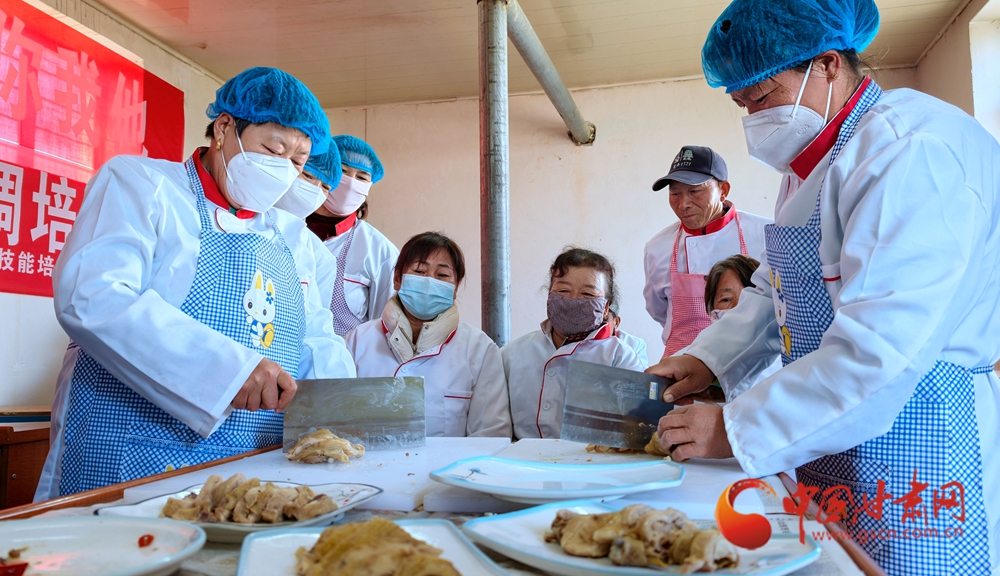 11月4日,金塔縣古城鄉(xiāng)頭號村,村民在培訓(xùn)老師指導(dǎo)下正在學(xué)習(xí)廚藝。