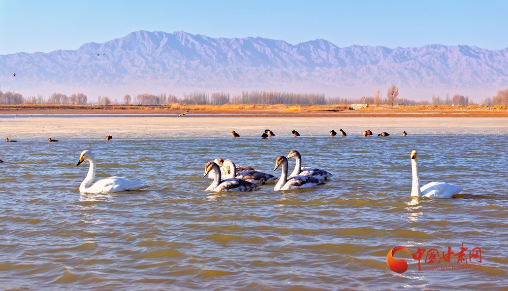 11月24日,一場瑞雪過后,臨澤大地銀裝素裹。朱紅殿宇與皚皚祁連山相映成趣,繪就獨(dú)特意境。雙泉湖雖覆薄冰,卻有成群天鵝游弋,潔白的身影在冰面與雪色間穿梭,為靜謐的冬日注入生機(jī)。