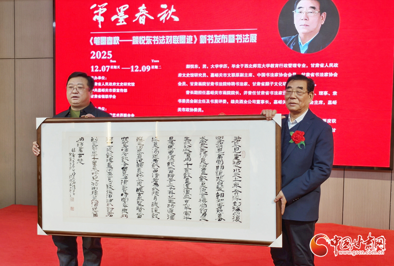中國甘肅網(wǎng)12月7日訊(西北角·中國甘肅網(wǎng)記者 任磊)12月7日上午,《筆墨春秋—顏悅東書法對聯(lián)墨跡》新書發(fā)布暨書法展在甘肅省藝術(shù)館啟幕。本次展覽集中呈現(xiàn)顏悅東近年來創(chuàng)作的120幅書法作品,同期發(fā)布的新書收錄楹聯(lián)作品330副,系統(tǒng)呈現(xiàn)了作者在書法領(lǐng)域的藝術(shù)探索與創(chuàng)作成果。
