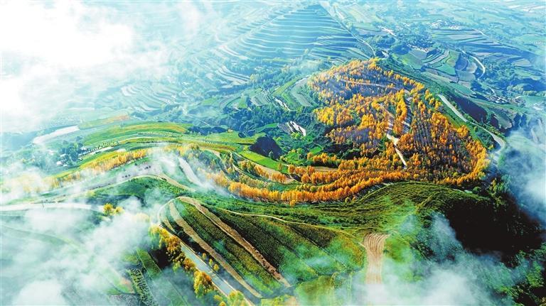 秋日的隴西縣柯寨鎮(zhèn)虎家屲村,云霧似輕紗裹滿山巒,村落與林帶隱入煙靄之間——黃土高原上世代耕耘出的“大地藝術(shù)”,正將自然意趣與煙火溫情,暈染成一幀秋日的水墨詩行。