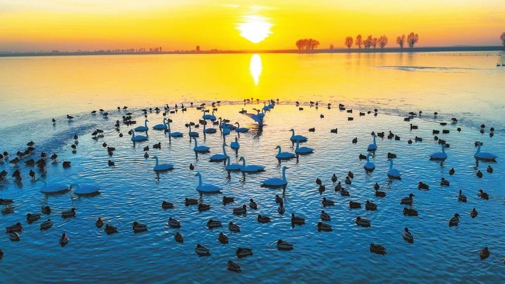 11月20日,甘肅金塔縣芨芨水庫濕地,遷徙越冬的白天鵝、赤麻鴨成群翔集湖面,成為初冬一道靚麗風(fēng)景。近年來,金塔縣持續(xù)改善生態(tài)環(huán)境,加強濕地保護與修復(fù)工作,為水鳥提供了理想的棲息場所,每年在此棲息的候鳥多達數(shù)萬只。 奔流新聞·蘭州晨報通訊員 曹紅祖 李鵬 段金龍 攝